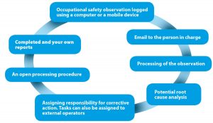 Recording and analysis of observations concerning occupational safety and notices of near misses. Completed reports which include not only a description of the event but also photographs relating to the observation, corrective actions and schedule. All the users can follow the processing of the observation.